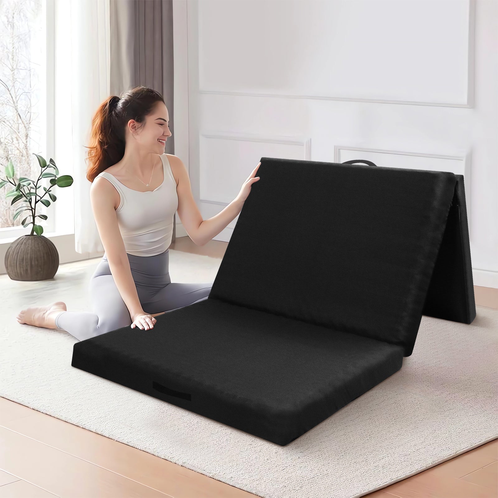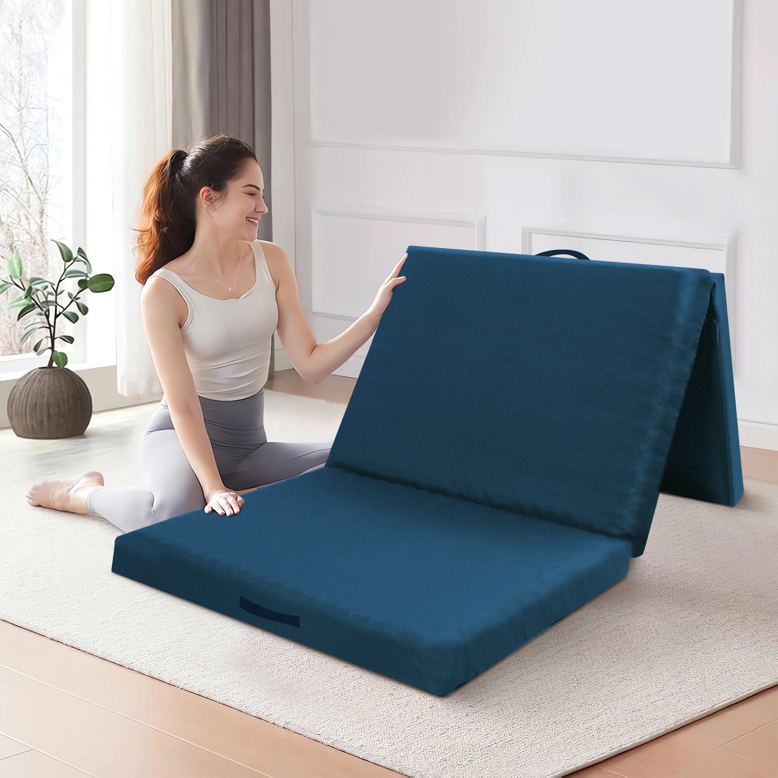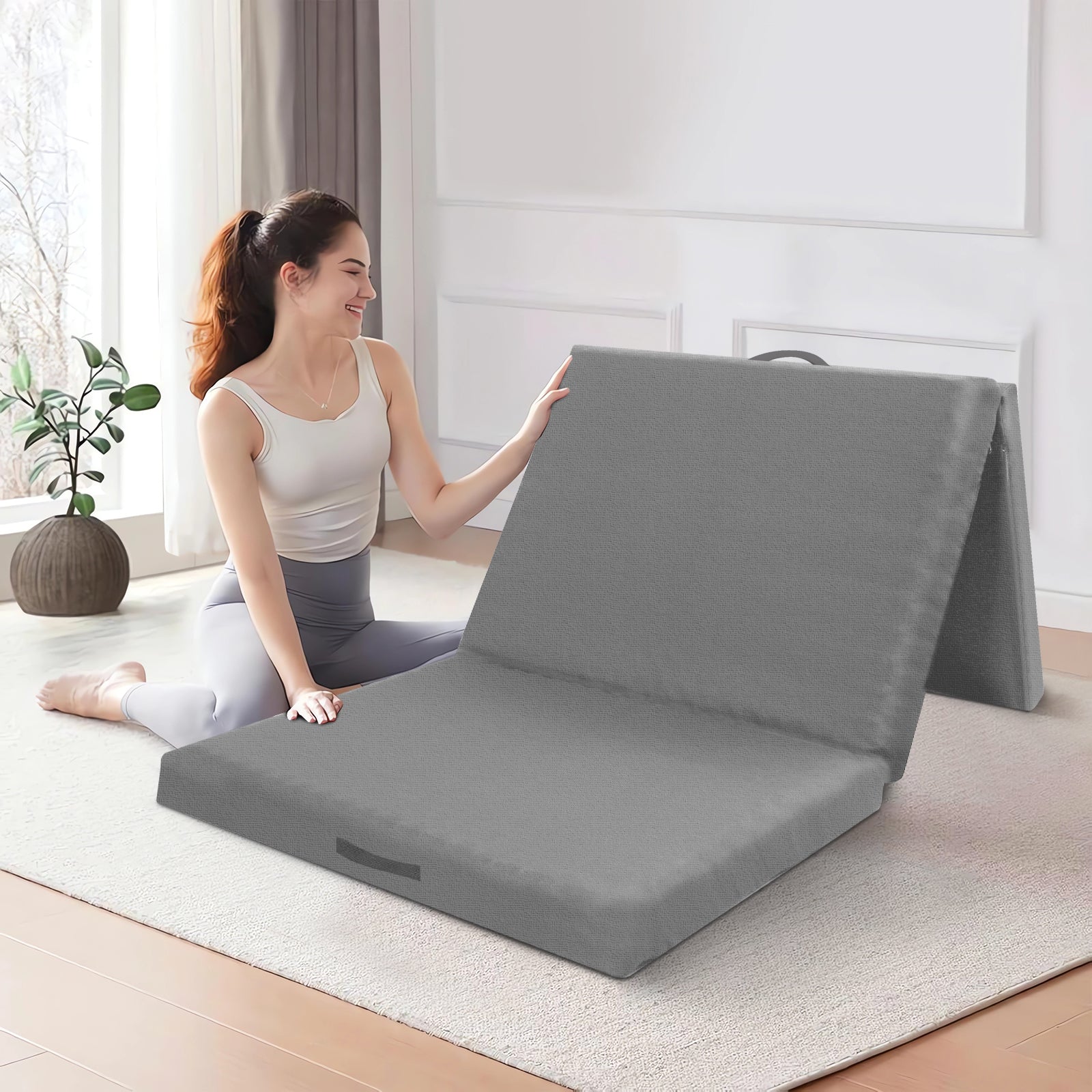 【三つ折りデザインで簡単収納と持ち運び】 このマットレスは、使わない時には簡単に三つ折りにしてコンパクトに収納できます。旅行やお客様用に便利で、収納スペースを節約できます。さらに、軽量設計なので、持ち運びも簡単です。広げるだけで即使用可能で、寝心地を損なうことなく快適に眠れます。また、取り外し可能なカバーは水洗い可能で、常に清潔な状態を保つことができます。