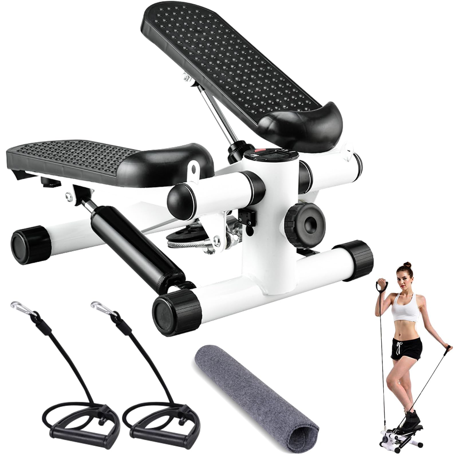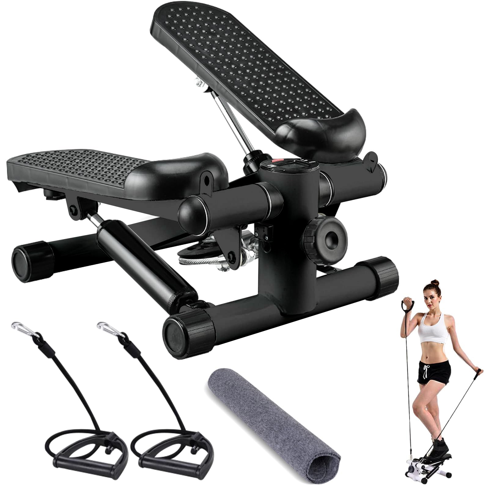 JPStriv ステッパー 静音 ラバーバンド&マット付き | LCDモニター搭載 省スペース 有酸素運動 耐荷重100kg ダイエット フィットネスマシン