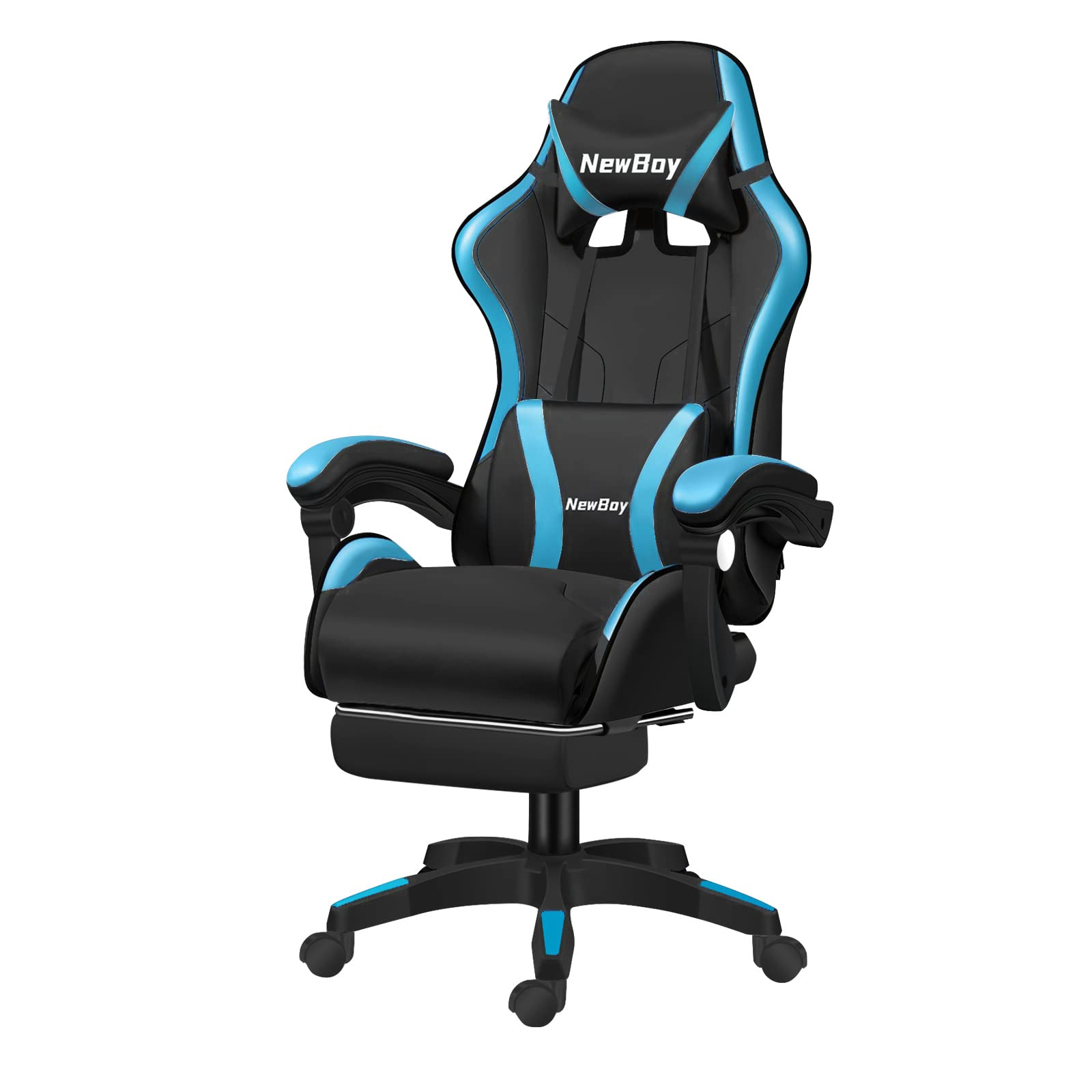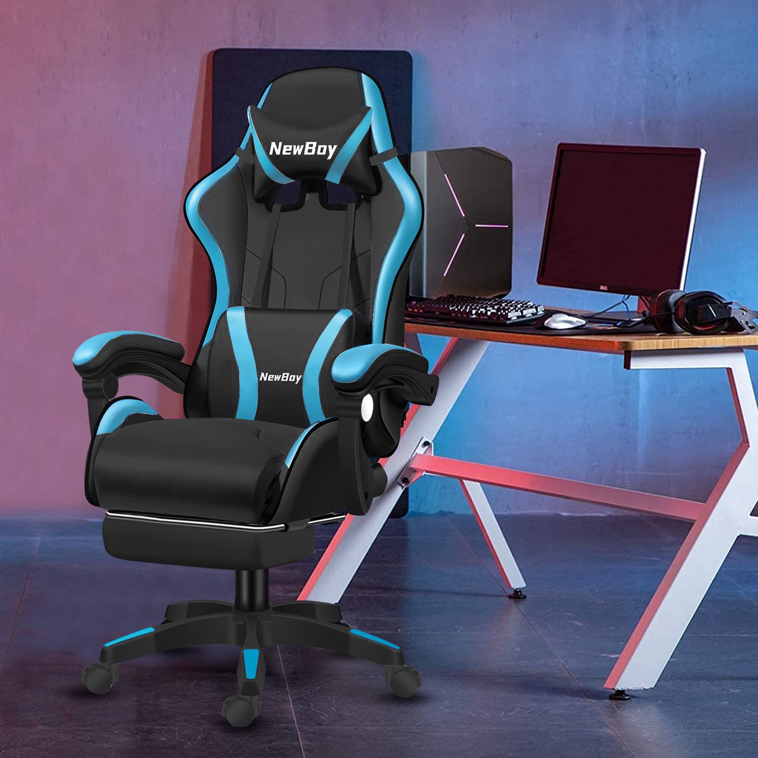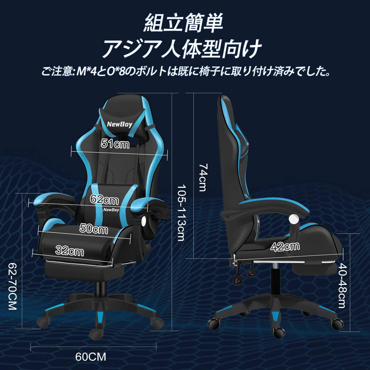PikPok ゲーミングチェア pcチェア 椅子 デスクチェア ゲーム用チェア リクライニング パソコンチェア ハイバック ヘッドレスト ランバーサポート ひじ掛け付き 高さ調整機能 PUレザー(黒と青 08)